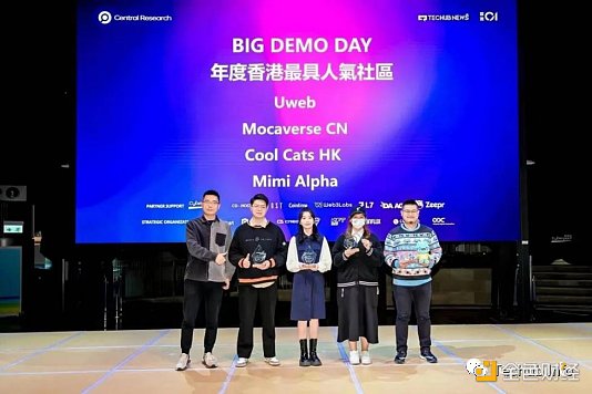 在BIG DEMO DAY的圆桌会议和路演项目结束后,我们迎来了激动人心的颁奖环节。今年,BIG DEMO DAY 香港最具人气社区奖分别由Mocaverse CN、Cool Cats HK、Mimi和Alpha夺得。