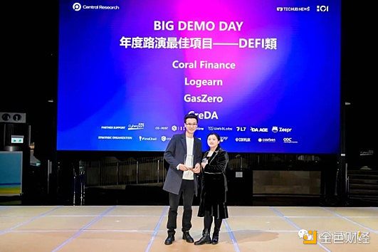 DEFI类项目中,Coral Finance、Logearn、GasZero、CreDA 凭借其在去中心化金融领域的创新应用获得了年度路演最佳项目DEFI类奖项。