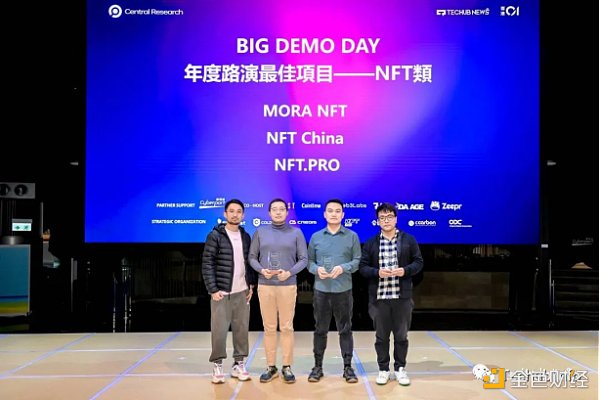 NFT类项目中,MORA NFT、NFT China、NFT.PRO凭借其独特的艺术价值和收藏价值获得了年度路演最佳项目NFT类奖项。