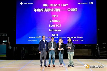 在公链类项目中,IOST、Conflux、ELASTOS、InitVerse和NEO凭借其卓越的技术和创新能力获得了 BIG DEMO DAY 年度路演最佳项目公链类奖项。