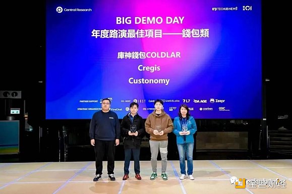 库神钱包COLDLAR、Cregis和Custonomy凭借其出色的安全性和用户体验获得了BIG DEMO DAY 年度路演最佳项目钱包类奖项。