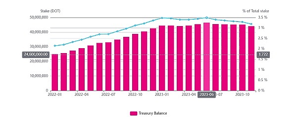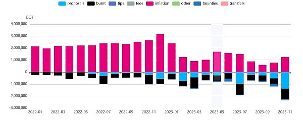 5、国库账户的流入:在2023年,国库账户收入182.5万DOT。