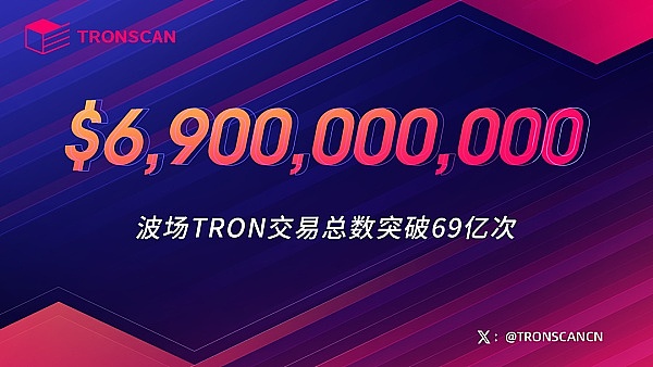 据区块链浏览器TRONSCAN数据,截至12月25日,波场TRON交易总数达到6,904,311,808,正式突破69亿。