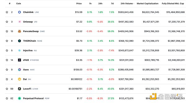 过去24小时去中心化交易所的交易量 数据来源:coingecko