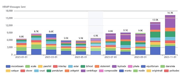 9、XCM v3 合并:在今年1月份,XCM v3合并带来了先进的可编程性、改进的桥接以及对NFT的支持。从数据上看,XCM平行链活动环比增加了60%,这显示了Polkadot在支持跨链通信方面的不断改进。