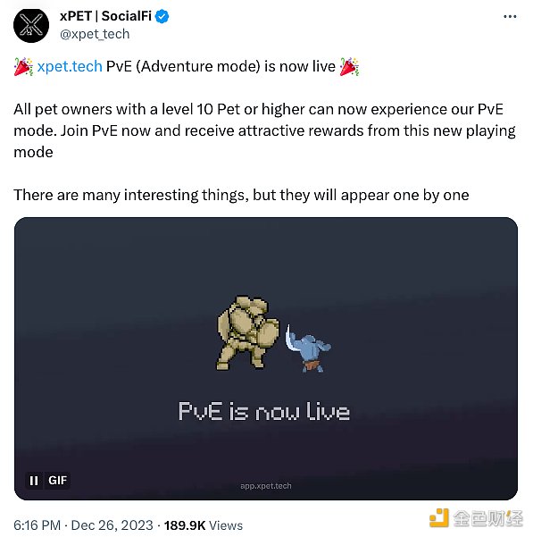 具体玩法请参阅金色财经此前报道”边刷推特边养宠物挣钱 xPet会引爆SocialGameFi吗”