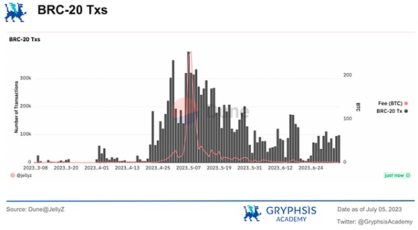 对于投资者而言,值得关注BRC20、BTC NFT等协议标准未来可能带来的新机遇,尤其是需要密切留意在经历超跌之后的领军代表$ORDI的配置机会。