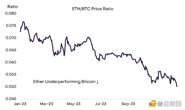 图表 1:2023 年 ETH/BTC 价格比呈下降趋势