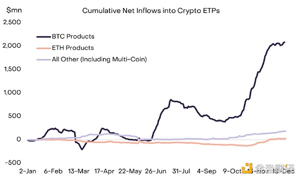 图表 2:比特币特有的积极因素似乎推动了更大的 ETP 流入