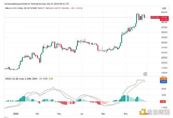 BTC/USD 3 日图与 MACD。 来源:TradingView