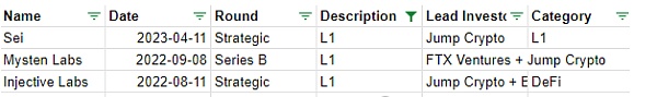所有表现出色的Layer 1(L1)项目都得到了Jump的支持。尽管SUI并未直接受到支持,但它们在Mysten Labs上进行了大量的投资,而Mysten Labs则位于SUI链上。