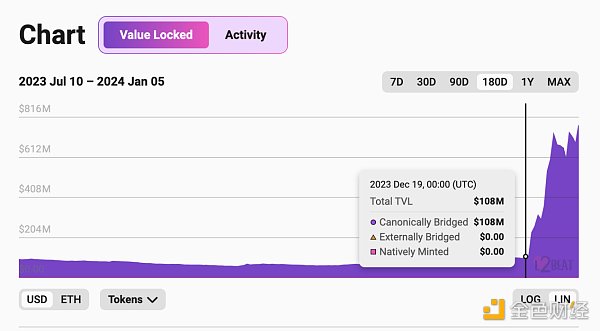 而Metis Andromeda TVL的走势同样凶猛,不但接连两次超过Base,并且自12月18日起就进入近90°上涨模式。