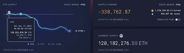 以太坊总供应量变化,来源:ultrasound.money