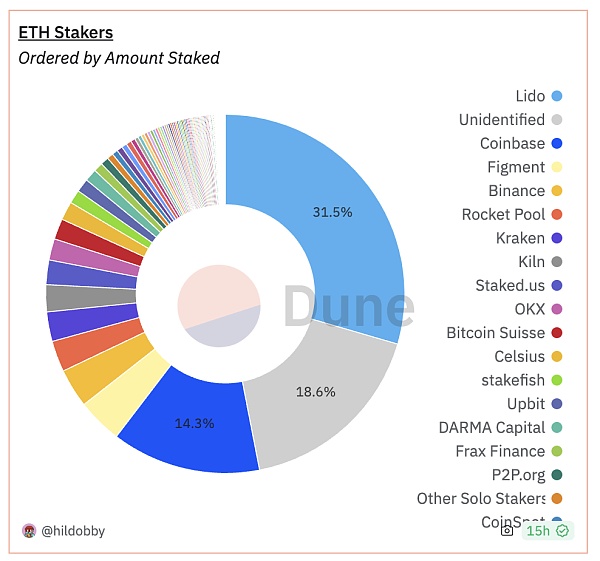 随着质押率的上升,Lido在以太坊质押市场的份额将超过1/3,使得质押赛道呈现过于中心化的趋势。这引起了市场对于Lido成长是否对以太坊主网共识安全构成威胁的担忧。关于Lido中心化是否具有潜在危害的讨论纷至沓来,各方观点不一。
