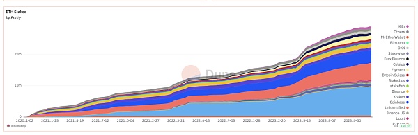 以太坊质押量变化,来源:dune.com