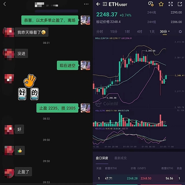 第2单:今早以太在2271布局的空单完美到达止盈目标2235,止盈36个点