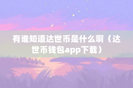 有谁知道达世币是什么啊(达世币钱包app下载)