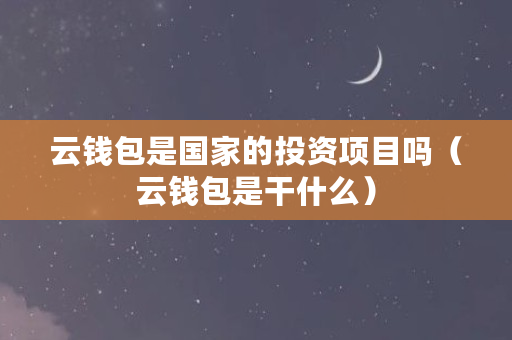 云钱包是国家的投资项目吗(云钱包是干什么)