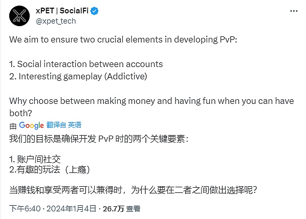 不过,话说回来,项目方一直希望游戏通过PvE和PvP的机制来解决链游一直以来存在的问题(即如何区分回本和盈利,以实现项目的长期发展),从而使Bpet不再受到通货膨胀的影响,避免像2021年的GameFi项目那样。