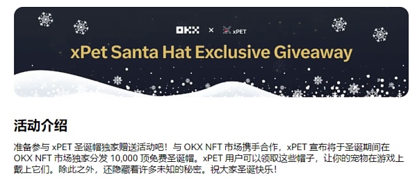 首先,这是项目第一个NFT,和OKX共同合作的,购买以后可以给宠物带上,且描述说隐藏很多位置的秘密。而白皮书中说冒险三层可能会针对符合标准的人开放,那么待着圣诞帽的宠物可能就是一个标准,按照现在的热度,应该很多人想参与这个项目,但是帽子又只有10000个,所以,你懂得。
