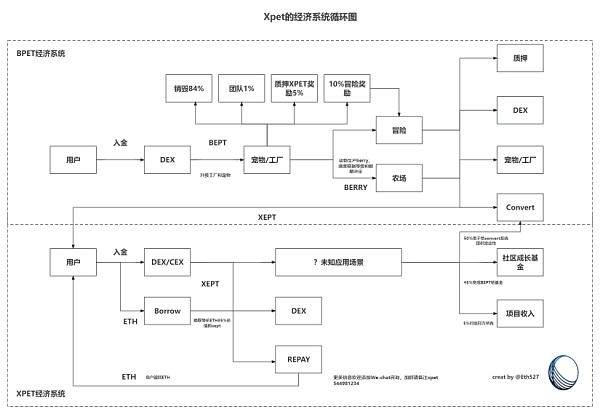 毕竟这是一个涉及金融(Fi)的项目,经济系统成为了不可或缺的核心。我们都参与这个项目是为了实现盈利,因此深入了解经济系统是至关重要的。在投入XPET之前,理解白皮书构建的经济系统是必不可少的一步。整个经济系统可简要划分为四大系统:入金、打金、出金以及循环和辅助系统。鉴于项目涉及BPET和XPET两种代币,推特大V527通过对它们的经济系统介绍,为您梳理入金、打金和出金这三个关键环节。