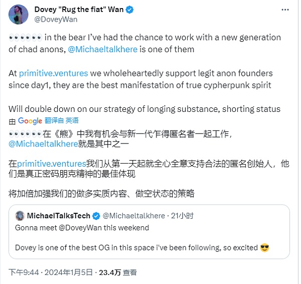 万卉小姐姐作为B圈早期资深的一批投资人,她的地位显而易见,所以万卉小姐姐的一言一行都会影响到市场上投资者心态,她昨天的这条推文目前已经突破了23万阅读量,她昨晚刚刚更新推文,就引发了Xpet圈里一次不小的动荡,因此也足以见得万卉小姐姐在B圈的影响力。