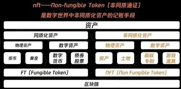 NFT,即非同质化代币,英文名“Non-Fungible Token”,是一种区块链数字账本上的数据单位,每个NFT可以代表一个独特的数字资料,可以作为虚拟货币有权的电子认证或证书。举例:比如现实中的货币、网络上的BTC等都属于同质化代币,因为你的一块钱和我的一块钱、你的一个BTC和我的一个BTC,是可以互相交换、没有区别的。而每一个NFT对应了一个具体的数字物品,比如一幅画、一个域名、一个游戏道具等,自然也就具有不可替换、不可分割、唯一性等特点。如下图