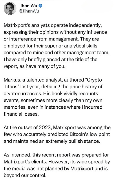 面对市场的普遍指责,Matrixport及其创始人的回应让投资者难以接受