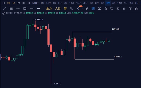 比特币四小时形成了一个新的震荡区,震荡区内空头量能一直在衰弱,说明空头力量不强,但是多头也没有怎么放量,虽然底部在抬高,但是高点也在降低,这是很明显的震荡行情。目前BTC这个位置不适合做短线,不上不下的位置很尴尬,但是其他的很多币种都已经止跌了,都有机会进场。