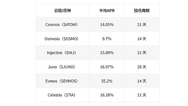 Cosmos 生态系各链APR 与锁仓期