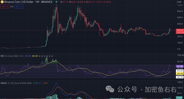 币安币(BNB)的每周价格分析显示,空头在过去几天控制了市场。BNB 突破并收于对称三角形下方,表明空头战胜多头。截至撰写本文时,BNB 交易价格为 318 美元,过去 24 小时内小幅上涨 0.58%;然而,在过去的 7 个交易日里,BNB 却录得 5.26% 的下跌。BNB 的市场情绪依然看跌,关键阻力位为 330 美元,支撑位为 290 美元。