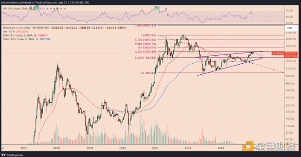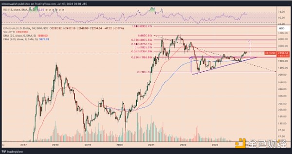 ETH/美元每周价格图表。 来源:TradingView