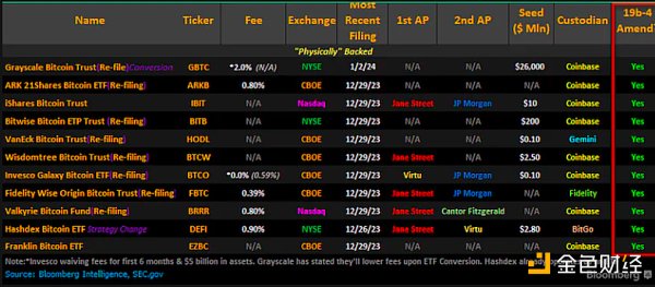 彭博社 2024 年 1 月 5 日美国现货比特币 ETF 状态摘录