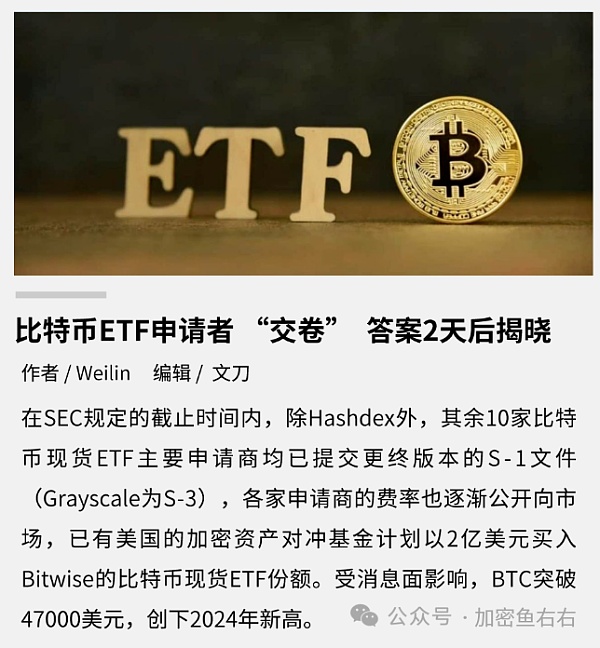 比特币ETF申请逼近.BTC反弹新高、一度突破4.7万美元.或将带动以太坊上涨75%