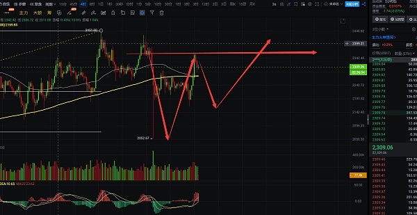 4小时线上看,以太的这波反弹到达2350附近后就开始下跌,说明短线上空头还是有一定力度,以太的反弹基本上都是大饼带动,现货ETF也是以大饼为主,以太的波动就会小一点,后续出现补涨的机会也需要等待现货ETF这个事件过去后再看有没有机会,这波反弹虽然没有到达2385位置,但到达了短线压力2350附近后下跌,以太日内还会继续去给到回调,回调区间预计在2240-2205,到达该区间后再去考虑多,下方还有一定的空间,自行可布局空,轻仓带止损;自行把握进场机会;短线交易,控制风险,盈亏自理;