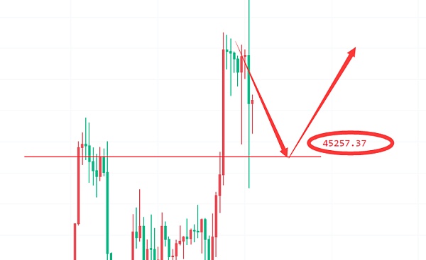 比特币如期而至回踩支撑45500这一线的支撑,昨日的预埋单还是比较不错,回到日内上日线收取长上影阴线,日线再次在拉升之后开始收阴整体趋势还是比较模糊的,所以目前建议日线多多关注45000这个整数关口上 支撑力度。短线四小时上boll开始收缩,附图指标macd多头收量,kdj高位死叉向下发散整体空头氛围还是在弥漫,四小时下行支撑关注45300一线,一小时上价格维持在下跌通道中,上方46500为上行压制,附图指标整体上虽然有止跌迹象,但是整体依旧处于偏空情绪。综合整体上建议比特币回调支撑布局多单为主。