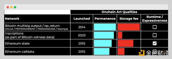 相比之下,由于底层数据在交易中存储的方式,每个 Ordinals 都完全在比特币区块链上,并且与链上以太坊 NFT 相比,存储成本要便宜得多。 他们缺乏先进的智能合约功能,但他们用当今 NFT 领域最佳的持久性与成本比来弥补。