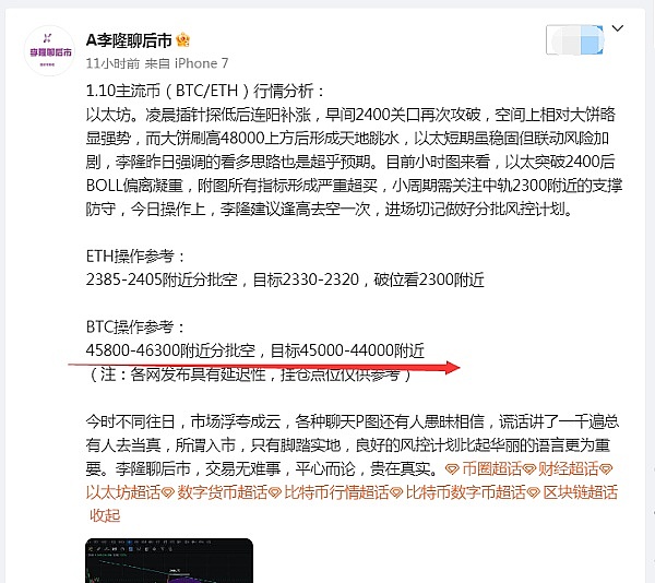 李隆:1.10主流币(BTC/ETH)大饼复盘