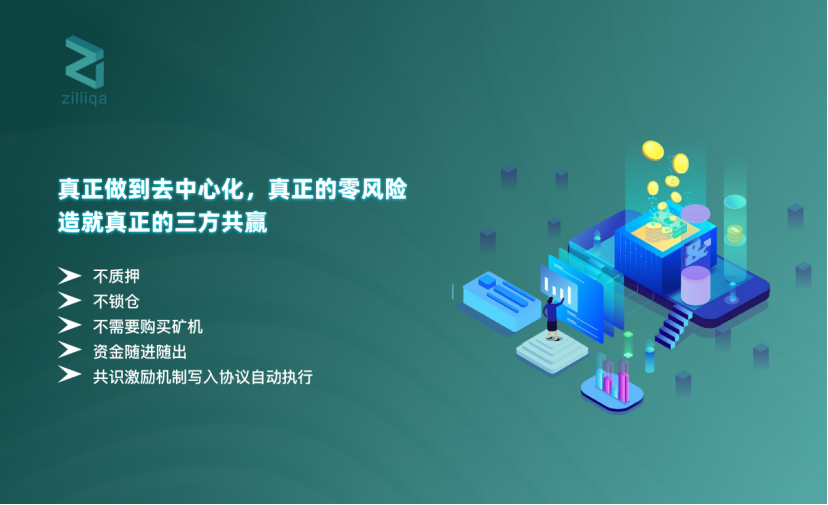Zilliqa云智能挖矿属于环保挖矿,颠覆传统挖矿模式,不质押,不锁仓,不需要购买矿机,资金随进随出,共识激励机制写入协议,自动执行,真正做到去中心化,真正的零风险,造就真正的三方共赢。