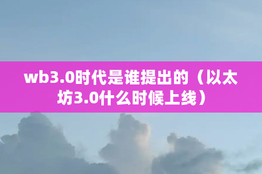 wb3.0时代是谁提出的(以太坊3.0什么时候上线)