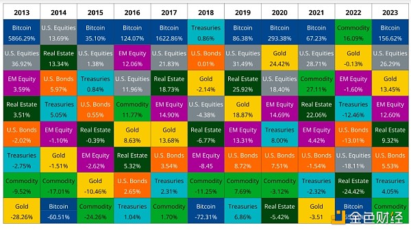 过去 11 年中有 8 年比特币一直是表现最好的资产类别