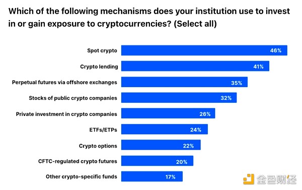 机构投资者通过一系列产品寻求投资加密货币。 资料来源:Coinbase 2023 年机构调查