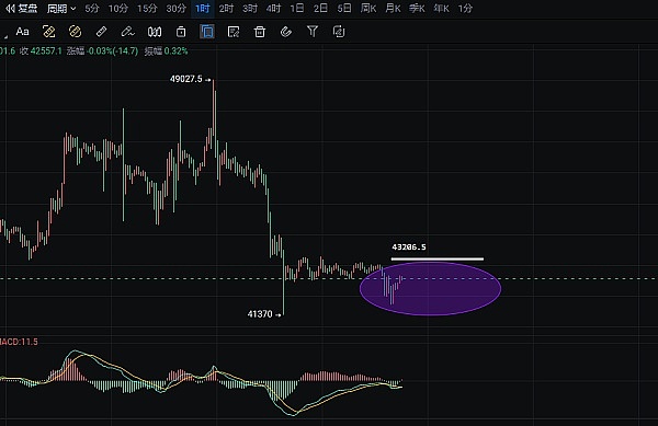 42700上方-43200附近分批空,目标42000-41500附近