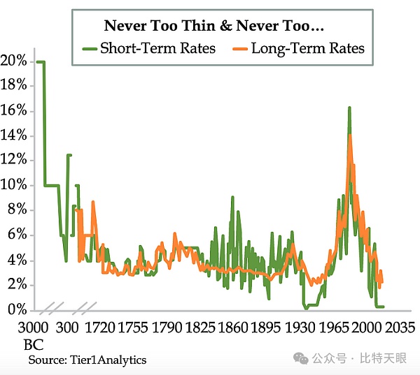 DanielleDiMartinoBooth提供的这张图表。正如您所看到的,为应对2008年全球金融危机(GFC),利率被推至5000年来的最低点。