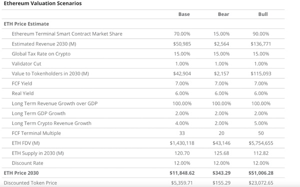 根据他们的估算,到2030年,ETH的价格在“基础”情景下将为11,848美元,在“看涨”情景下,该币将超过51,000美元。此外,在最坏的情况下,根据他们的估算,如果需求不足,ETH汇率可能会降至近300美元。