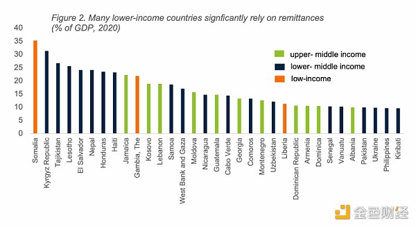 在一些低收入国家,汇款业是国内生产总值(GDP)的最大驱动力之一,也是许多经济体的存活方式: