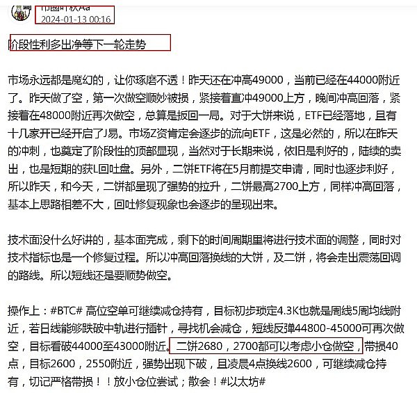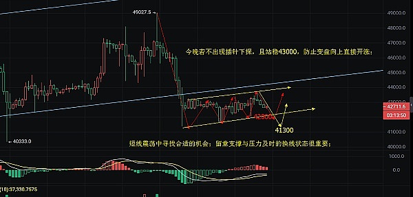 操作上维持先空后多,大饼留意43000压制状态,以及42000短期支撑效应,不排除会出现激烈的插针现象。42800上下100点开空短线看42000,强势下探换线,可尝试看到41500,300.下方42000,41300支撑点位可分别小仓尝试做多,目标可波段尝试上看44000,47000.二饼短线2550附近小空,看2500,2480,若强势换线2500下,可继续尝试持有至2400上下;见2400,2380可做多尝试;仅参考,散会。