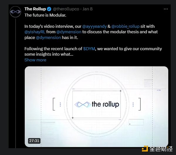 模块化扩展的另一个重要基础设施是 Dymension。Dymension 正在寻求为 Rollup 创建一个支持 IBC 的标准,开发人员只需单击几下即可使用该标准来部署自定义 Rollup。在接受 The Rollup 采访时,Dymension 创始人谈到了 Dymension 如何融入模块化生态系统: