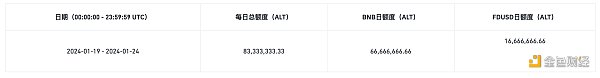 用户可以在2024年01月19日08:00(东八区时间)后在Launchpad网站将BNB、FDUSD投入到 AltLayer挖矿池中获得ALT奖励,ALT共计可挖矿6天。网站预计将于此公告的大约二十四小时内,挖矿活动开放前更新。