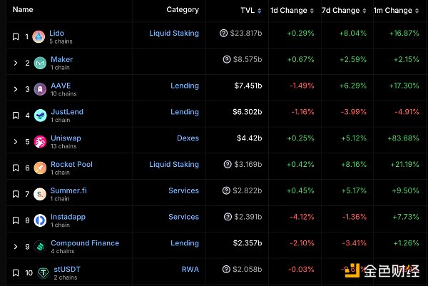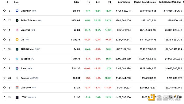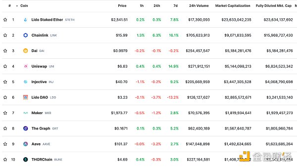 DeFi总市值及前十代币 数据来源:coingecko